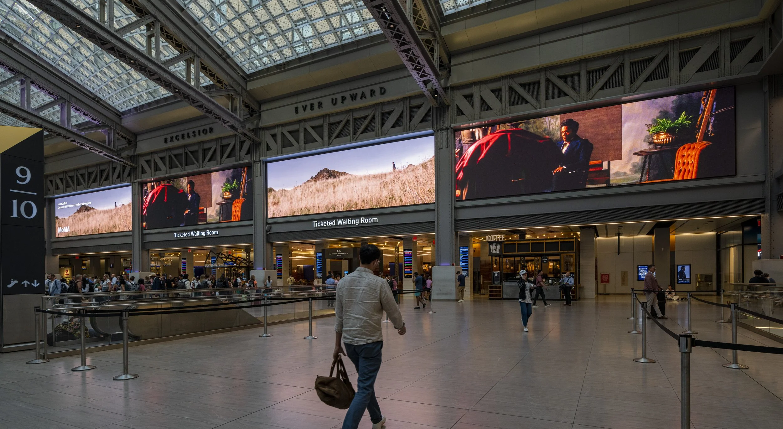 An ongoing brand awareness campaign between Moynihan Train Hall and MoMA activated across all screens on-site and integrated into a rotating schedule of branded placements. In collaboration with an animator and series of stakeholders to refresh creative on a bi-monthly cadence. Featuring a unique breadth or works in MoMA’s collection.